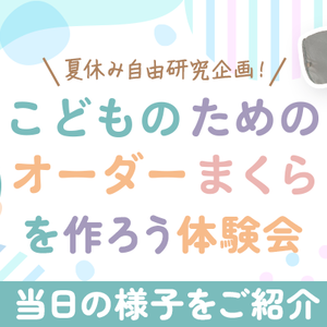 夏休みがスタートして間もない7月26日、たくさんのご応募をいただいた「こどものためのオーダーまくらを作ろう!体験会」を開催しました。 自分にあった枕を作るプロセスを親子で一緒に体験しながら、眠りの大切さについても学べるイベント。 当日はこどもたちの笑...